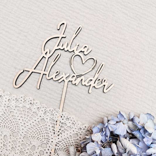 Cake Topper Hochzeit Namen und Herz * Personalisiert mit Vornamen * Holz | Acryl