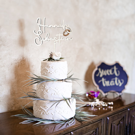 Cake Topper Hochzeit Namen und Ringe * personalisiert mit Vornamen & Datum * Holz
