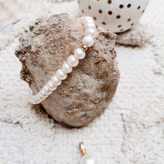 Elegance Perlenarmband mit Charm * 925 Sterling Silber goldplattiert