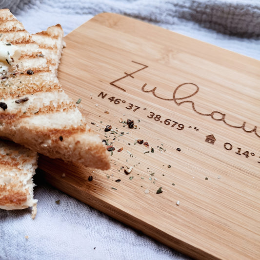 Personalisiertes Frühstücksbrettchen Bambus * Koordinaten