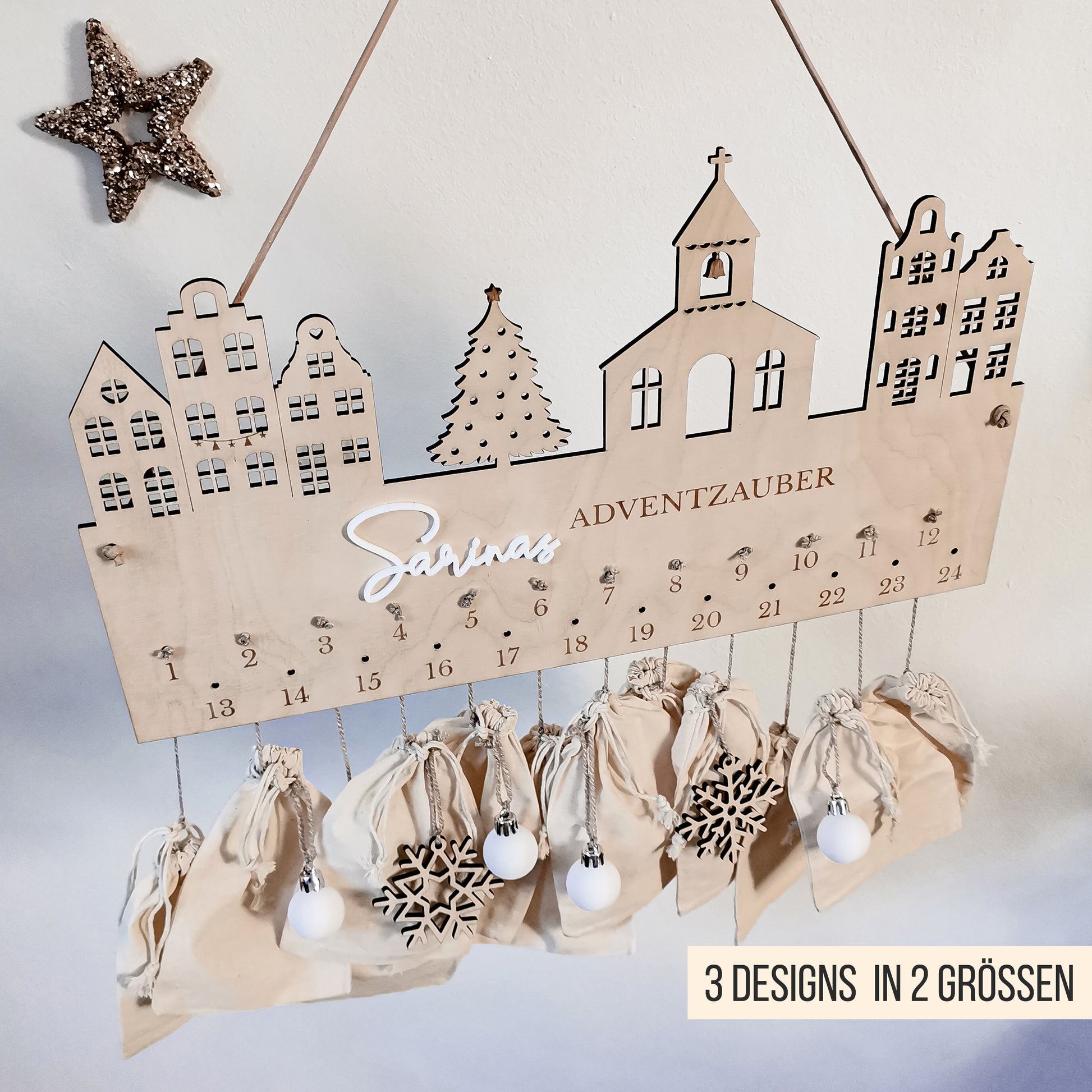 Adventskalender Weihnachtsstadt * Stadt Häuser Kirche Tannenbaum * Bundle mit 2 Größen * SVG Laserdatei