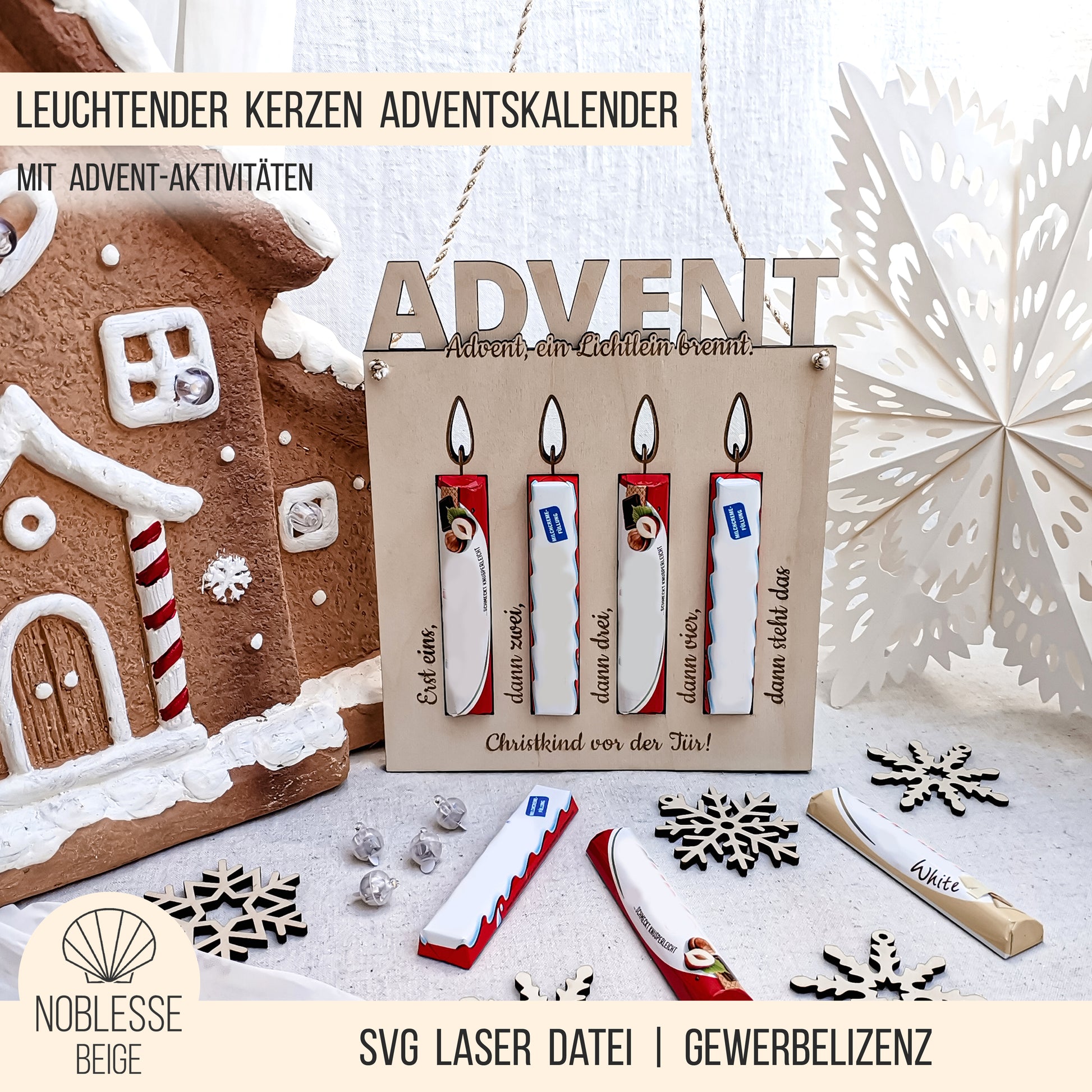 Adventskalender mit 4 Schokoriegel Kerzen * beleuchteter moderner Adventskranz & Advent Aktivitäten * Bundle * SVG Laserdatei