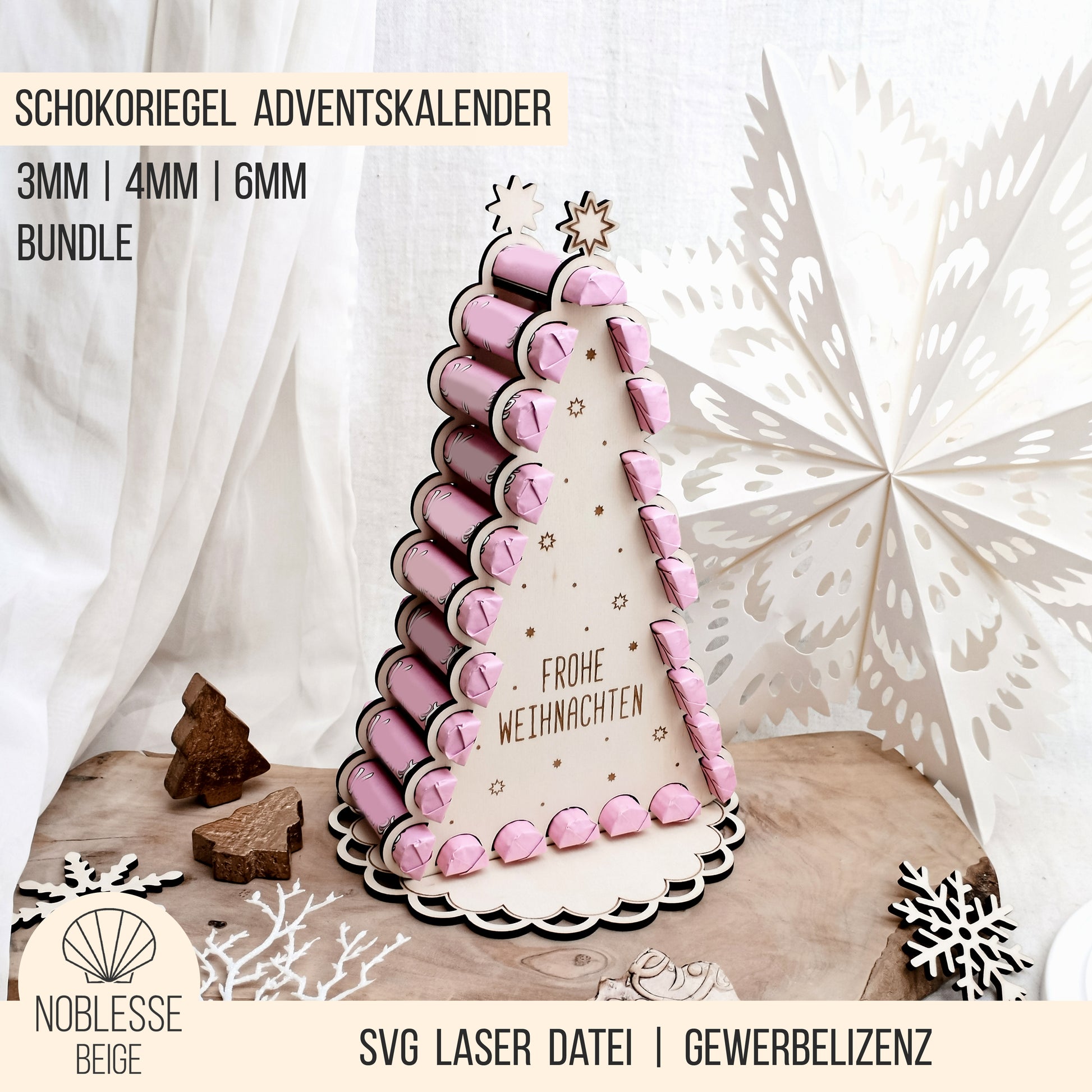 Adventskalender Weihnachtsbaum für rosa Schokoriegel * 3mm | 4mm | 6mm * Bundle * SVG Laserdatei