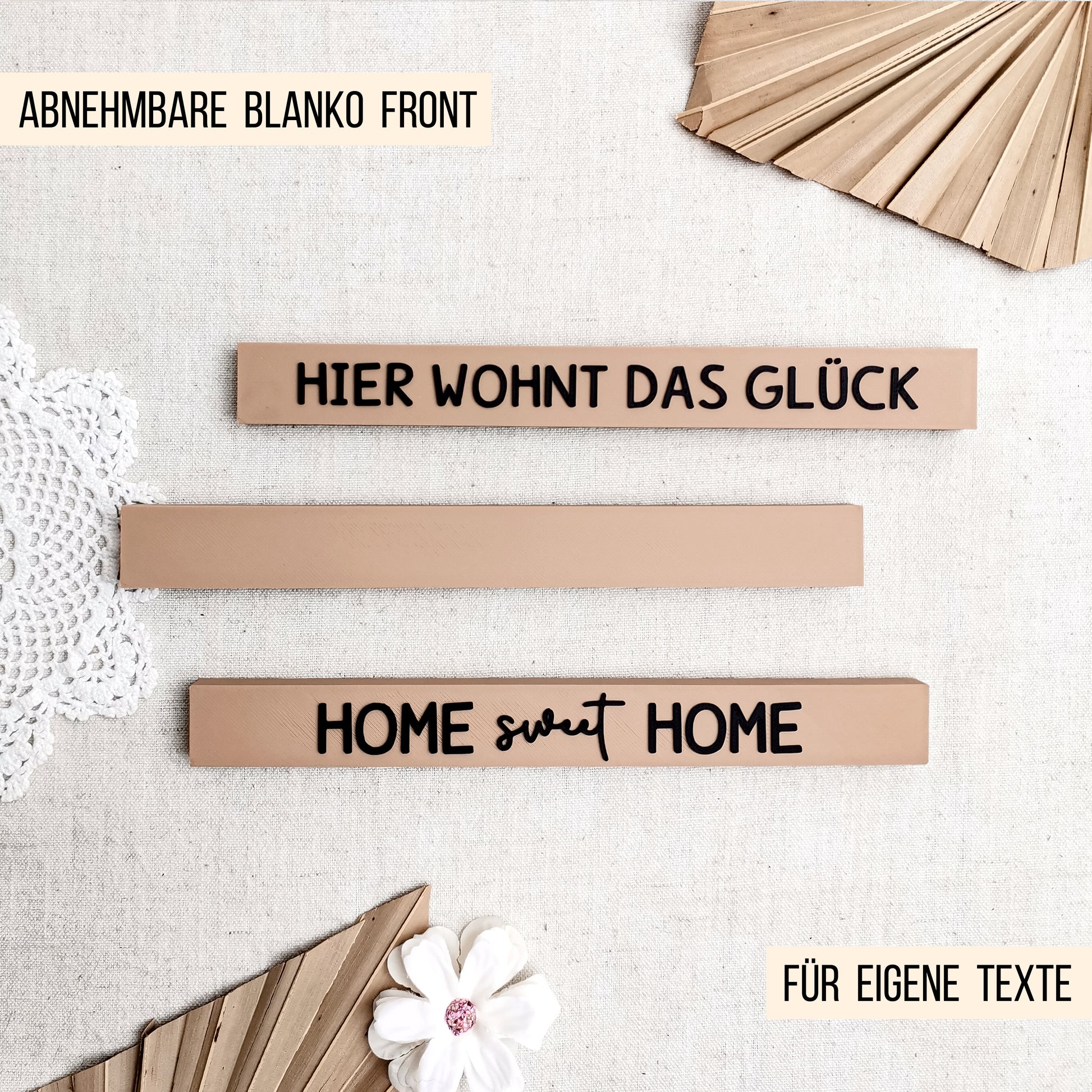 In dieser Datei erhalten Sie unsere wundervolle Dekoleiste mit abnehmbarer blanker Front, die Sie individuell mit eigenen Texten gestalten können. Die enthaltene Front ist auch mit unserer LED Dekoleiste und Häuserleiste kompatibel. Sie können die Front der zusammensteckbaren zweiteiligen Dekoleisten jederzeit (ohne Werkzeug) auswechseln und die vielfältigen Leisten auf diese Weise einfach an bestimmte Jahreszeiten und Anlässe anpassen. Bei dieser Ausführung der Leiste handelt es sich übrigens um eine praktische Kombileiste für gedruckte und gelaserte Einschieber bis zu einer Dicke von 3mm! LED Dekoleiste und Schriften sind nicht in dieser Datei enthalten! Je nach Drucker und Ihren Einstellungen kann die Steckverbindung der Leiste fester oder lockerer sitzen. Wir empfehlen beide Teile der Leiste (Vorderseite und Rückseite) mit verbesserter Druckbetthaftung (Brim aktivieren) zu drucken.