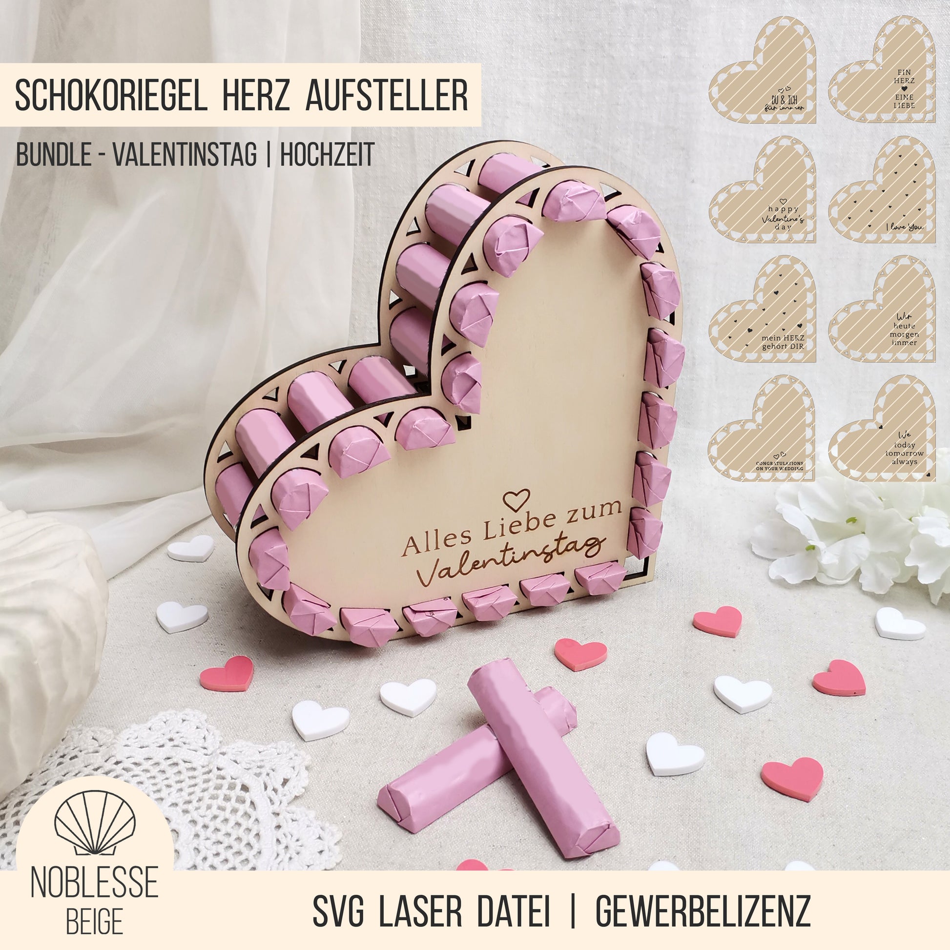 Herz Aufsteller für rosa Schokoriegel * Valentinstag & Hochzeit * 3mm | 4mm | 6mm * Bundle * SVG Laserdatei